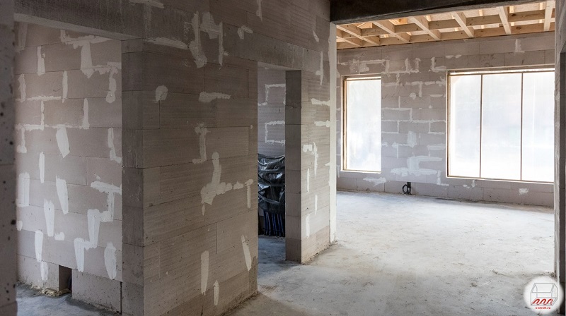 Стены из пенобетона получаются ровными и гладкими, за счет чего при отделке не нужно использовать выравнивающие смеси. Если производится кладка блоков в два ряда, то также необходимо заполнение вертикальных швов между рядами.